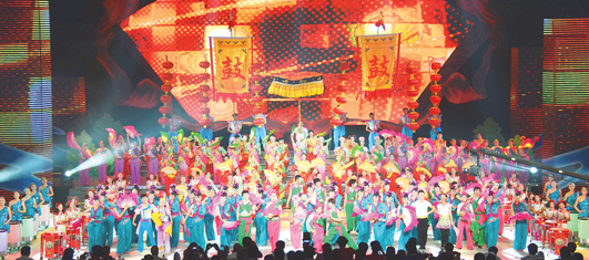 大型文藝晚會《風(fēng)起淮河》以“舞紅花鼓燈,建設(shè)新蚌埠”為主題,由“風(fēng)生水起花鼓紅”、“淮水風(fēng)情”、“華夏溢彩”、“五洲競放”、“好一個(gè)花鼓燈”等五個(gè)篇章組成,節(jié)目具有蚌埠獨(dú)特的標(biāo)識感,充分體現(xiàn)了“唱傳淮河文脈,解讀蚌埠新韻”的內(nèi)涵,全面展示了淮河風(fēng)情、民族特色、蚌埠情懷和時(shí)尚潮流。