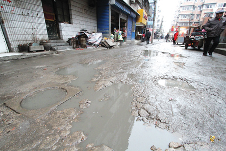 昨天,記者來到位于四季陽光小區(qū)西門外的這條支路,看到道路破損確實嚴重,沒走上幾步就出現(xiàn)一個大坑,有的坑中積滿了臟水,有的坑中填了些碎煤渣,巷子旁的一家幼兒園門前,幾只雞不停地啄著坑里的土。“這條‘鬧心路’,下雨天不知道滑倒了多少人。”長年在路口擺地攤賣些小雜貨的秦大媽說。 “這條路連著土鍋一條街和涂山路,是一條老路,曾經(jīng)叫南崗二路,每天有數(shù)萬人經(jīng)過這里。”高大姐在這條路上開了8年的小賣部,小店里常備一把手電筒,就怕夜里摔倒,她說最怕下雨天,“一下雨我就發(fā)愁,積水坑接二連三,顧客來買點東西還要蹚著泥水過,誰愿意來呢!經(jīng)常走這條路的周邊群眾都盼著能夠盡早修一修。